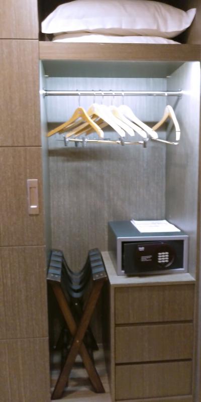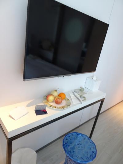 ウェルカムフルーツとウェルカムドリンク(パックジュースか缶)、無料のスマホ付き、水は1日1人1本ずつ追加されます。適度な狭さは少々荷物が広げにくいですが、コスパいいと思います。