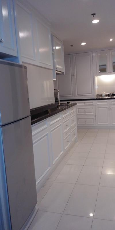 少々古いですが、キッチン電子レンジ大型冷蔵庫付きで長期滞在に便利そうな広い部屋です。