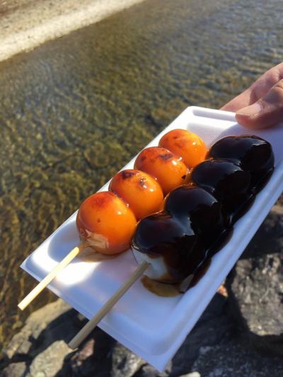 川辺で座って食べるもよし、近くにあるベンチは畳で広いので、子連れの方も利用していました。- 旅行時期