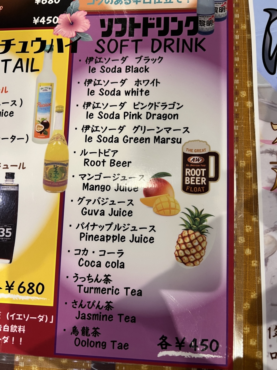 他にもステーキや沖縄料理もありますので使い勝手はよさそうです。- 旅行時期