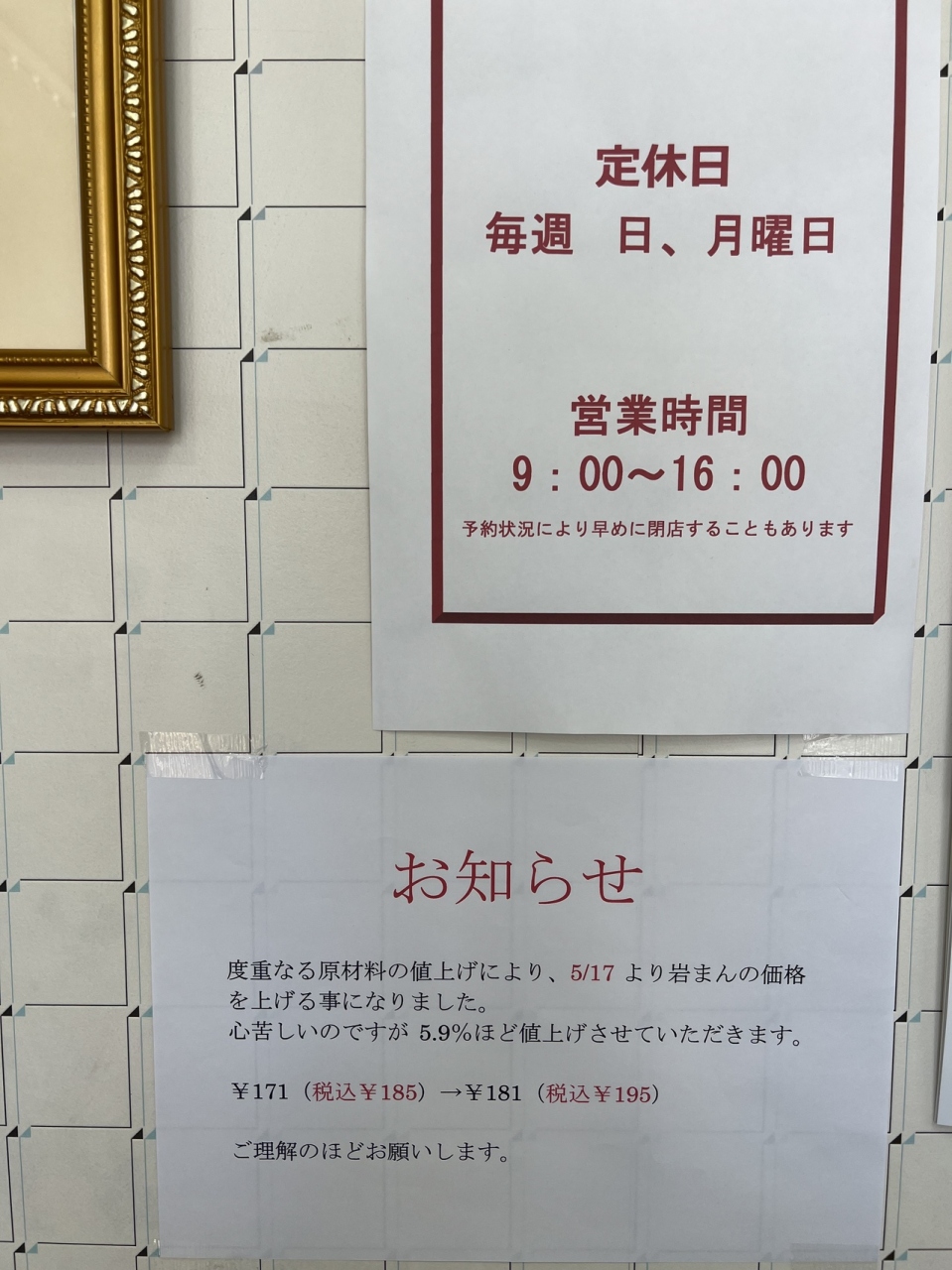 30年前に職場の同僚から帰省土産としていただいて衝撃を受けたのが岩味屋の「岩まん」です。通販は行っておらず、空港などの他の場所でも一切販売されていません。しかもほとんどが予約枠で売り切れることが多く、地元の方でも入手困難な幻の銘菓となっています。