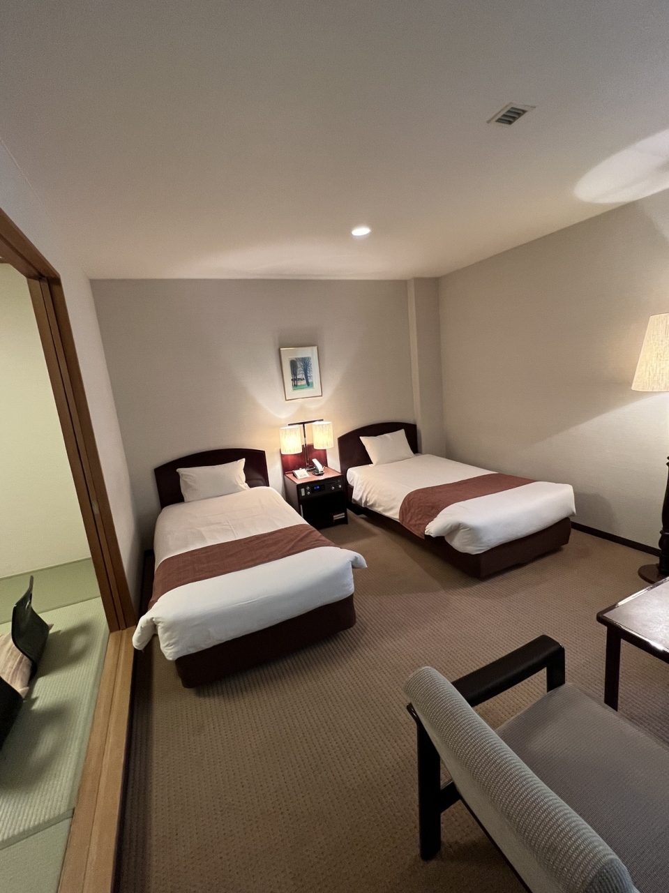 和室と洋室に分かれていて大人数向けの部屋に2人で宿泊しました。