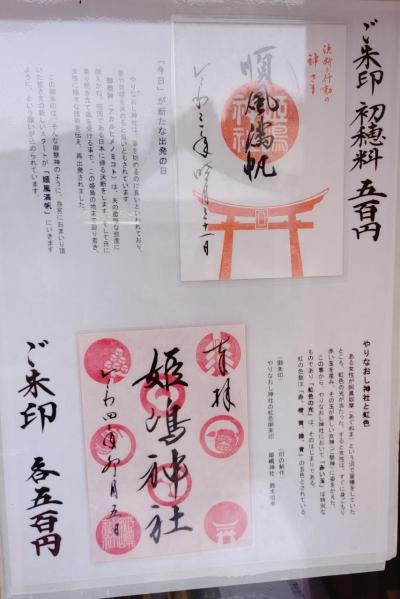姫島は古代難波八十島のひとつであった比売島がこの地に当たると伝えられてきた。『古事記』の応神記には、「昔、赤い玉より化生して美女となったアカルヒメが新羅の王子、天之日矛(アメノヒボコ)の妻となり、常に美食を用意して夫に仕えたが、夫は慢心を起こし妻をののしるので、『わたしはあなたの妻となるべき女ではありません。わたしの祖国へ帰ります。』と言って、難波に逃避行してきた」とある。昭和20年6月15日の第2次世界大戦の空襲で姫島の約4割が被害にあい、当社も戦火のため社殿、宝物、過去の文献などすべてを焼失、アカルヒメ同様何も無い状態からの出発となったことから「やりなおし神社」ともいわれる。- 旅行時期