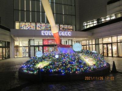 柏市の南、国道16号線に面して建つセブンパークアリオ柏がまるで光溢れる星空の世界に包まれたようです。入口からイルミネーションに照らされた路を歩くとファンタスチックな