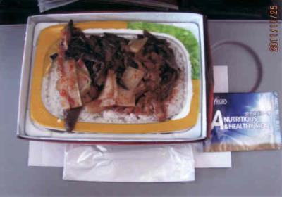 機内食 魚香肉糸飯42元(550円)。サンドイッチやら持ち込んでいる人も多いが空港で買うと1000円もしたとの事、機内食は安い。高速鉄道の弁当は35元なので高くはありません。自熱式。(水を入れると反応して熱を発します。)10分で出来上がるので“ほかほか”の食事を提供してくれます。味はちょっと辛味があり美味くも不味くも無い。中国製なので当然中国の味です。熱いので「によい」が良かった。