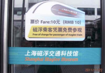 正式名を「上海磁浮列車」といい「上海磁浮交通発展有限公司」が運営している。上海市内と浦東空港間がタクシーで150~200元ほどすると考えるとリニアの場合(市内⇔龍陽路駅が地下鉄で2元、タクシーでも30元前後、リニアの乗車料金が50元としても合計でも52元~80元前後とタクシーよりも格安!)時間とお金の節約のために、そして430km/hの世界を体感すべく上海リニアモーターカーに乗ろう。