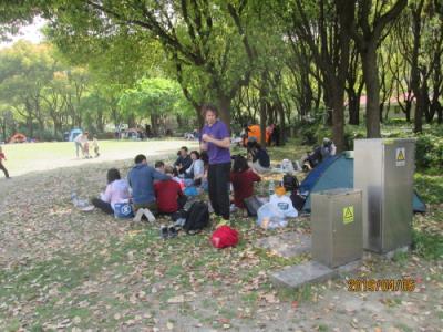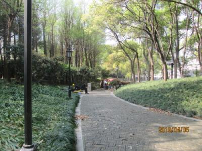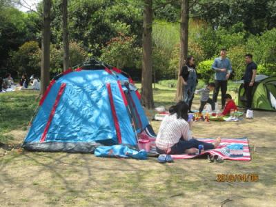新虹橋中心公園は地下鉄10号線伊犁路駅直結していて虹橋路と延安西路、伊梨路に囲まれた三角形の公園です。虹橋路を挟んで島屋が営業しています。虹橋路と延安西路の高層ビルに囲まれた都会のオアシスです。周りのビルには日系企業も多く存在する虹橋開発区のそばにある公園で、中にはバーベキューなどが行える施設や喫茶もあります。今日は清明節の連休(4月5日~7日)で気温も高く、家族連れでテントを張って、ボール遊びをしたりと春の1日を楽しんでいます。