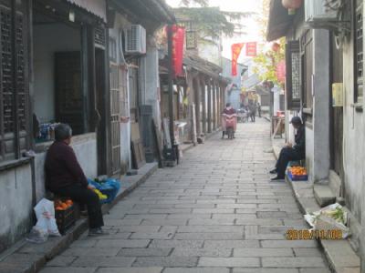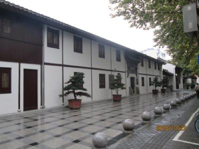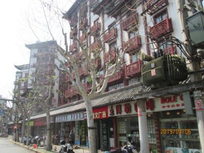 川沙古鎮の新川路は東西南北の城壕に囲まれた川沙古鎮の城内の南側を東西に走っています。バスの走るメイン道路でバス停もあります。観光スポットも多い。「上海市川沙中学」、「人民大会堂」、「川沙営造館」、「内史第(黄炎培故居)」、「観瀾小学」、「川沙古城壁公園」等主要観光スポットが揃っています。道の両側には商店街が並び、プラタナス並木も並んで居ます。夜間の観光の為に照明器具の取り付け工事もしていますので夜の散策にライトアップが綺麗です。ディズニーランドにも近く、手頃な料金で宿泊できるホテルもあります。
