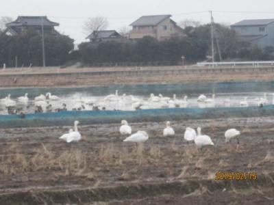 是非見たいのが白鳥の「羽ばたき」ですがそう簡単に見られないようです。日の出から二時間程の間、飛び立つ前の白鳥が行う場合が多い、白鳥の飛行を見るには早い時間帯に訪問する必要がありますが寒くて起きられません。夕方四時頃には出先から戻った白鳥が行います。私が行った時間は5時を過ぎた頃でした。白鳥は皆出先から戻った後で「羽ばたき」を見る事が出来ませんでした。