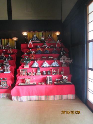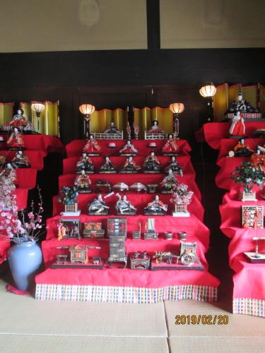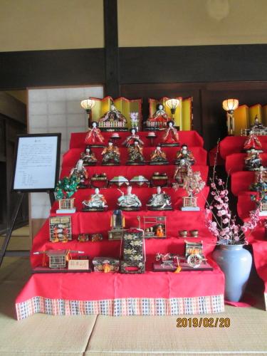 昔は柏駅から吉田家まで自分の土地で繋がっていたそうです。間もなくひな祭りなので雛飾りを展示されています。吉田家に代々伝わったお雛様ではありません。一般家庭では七段飾りは飾り切れませんが吉田家の主屋では小さく見えます。