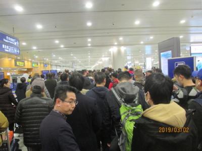 浦東T3航站楼は2020年開港予定と言う声あり。この所の浦東空港の混雑は酷い物です。中国人の海外旅行が解放されて、2015年の時点で浦東空港の年間旅客数は延べ6000万人(目標4200万人)に達している。現在工事中の第3ターミナルが目標8000万人ですが2018年に年間旅客数は延べ1億人に成りました。完成予定は2019年から2020年と遅れています。すでにオーバーしているので予定通り2020年に完成しないと大変な事になります。現在工事中の為、ターミナルに着けない航空機が離れた場所に沖止めと成る為、更に時間を要しています。今回沖止めで第3ターミナルを一周しました。大分出来上がって来ましたので2019年に完成するよう希望します。