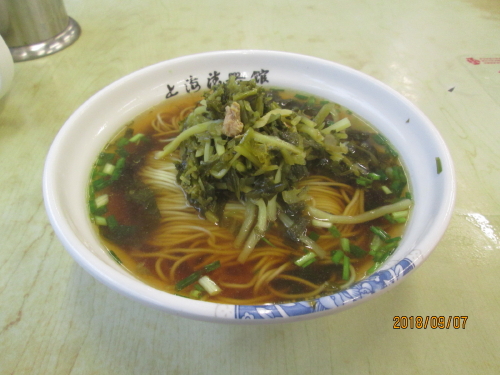 地下鉄2号線南京東路駅1号口出て直ぐの山西南路にある滄浪亭黄浦店です。老舗麺料理店の滄浪亭。細いストレート麺とあっさりした醤油味のスープが特徴の蘇州麺が人気です。私は細麺が好きです。メニューも種類豊富です。最初はカウンターで食券を買ってから席で待つシステム。レシートに番号が振ってあります。番号を呼ばれたら手を挙げれば注文品を持って来てくれます。皆さん注文時1品おかずを注文してました。食事どきは相席は当たり前です。創浪亭はチェーン店展開をしていますのでお近くにもあるでしょう。