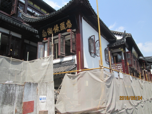 2018年3月に来た時に南翔小龍包は改装工事の為、近くで臨時営業をしていました。8月頃までと言う事でしたのでやって参りましたがまだ工事中でした。南翔饅頭店のみの改装かと思いましたら周辺のかなりの面積を工事していました。出来上がりは10月との事、中