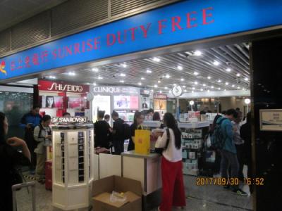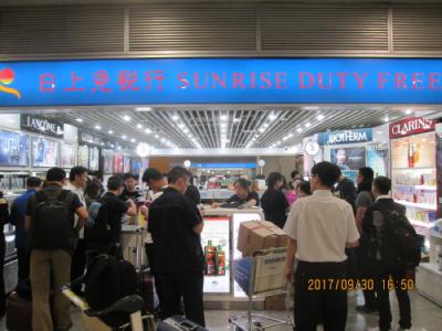 上海の浦東空港第2ターミナルに到着後、入国手続きを済ませ、荷物を受け取ろうと指定のターンテーブルへ足を向けたら、長い行列が出来ています。小さな免税店が出来ていて大勢の人が買い物をしています。これが到着時免税店だそうです。化粧品コーナーと酒、煙草の2つの免税店が離れて出来ました。爆買いの売上を海外でなく中国国内に取り込めば経済効果があがります。観光客は買い忘れた土産を買う事も出来ます。買った免税品を受け取るカウンターには長い行列が出来ていて中国人観光客の爆買いの凄さが解ります。