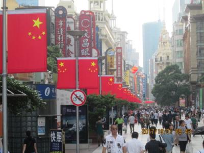 今年の国慶節は10月1日から8日まで、今年は国慶節に伝統的な祝日、中秋節(10月4日)が重なったため、例年より1日長い8連休。豫園はイベントは無く、国旗がずらりと並んでいます。豫園商場には沢山の人が集まり、南翔饅頭店の行列は何所が終わりか解りません、