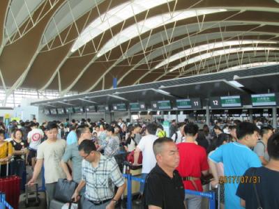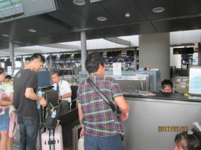 出発1時間前になると茨城、茨城と呼ばれますので右端のカウンターへ行きチェックインをします。1時間5分前に自分からカウンターへ行った方が早いようです。発券されたチケットには搭乗口締切8時05分と手書きされています。出国手続きも長蛇の列、特別通路に並びましたが7時55分頃出国手続き完了。即荷物検査を経て搭乗口に丁度8時5分でした。バスで飛行機まで行くので更に時間が掛かります。