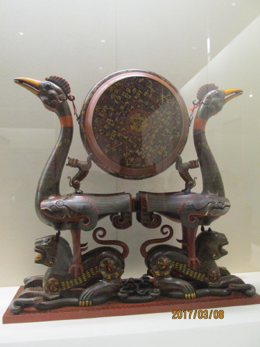 湖北省博物館は中国で規模が最も大きく、部類は沢山あります。建築面積は9600㎡、陳列面積は2400㎡あります。館には、原始時代から各時代の社会制度、社会生産と社会生活の文化財で新石器時代の屈家嶺文化の彩陶、石家河文化の美人、玉鷹;盤龍城の商代遺跡と墓からの出土品の大玉戈と銅鼎、銅鉞。随県の戦国曾侯乙の墓から出土された編鐘、青銅器と十六節透かし彫りの龍鳳の玉の装品、28晩の天文図;雲夢天虎地から出土した秦代の法律の文書や竹簡など、すべてが極めて重要的な歴史、科学と芸術の価値を持っています。