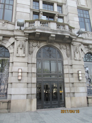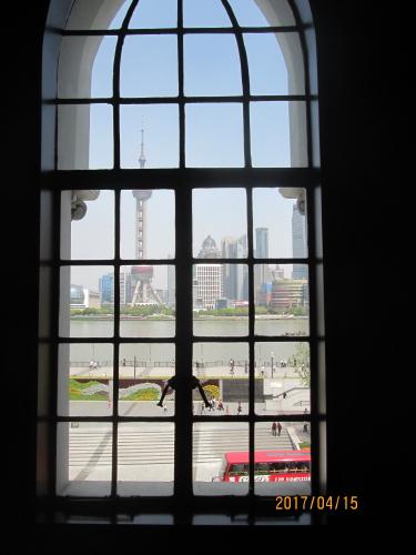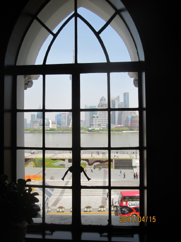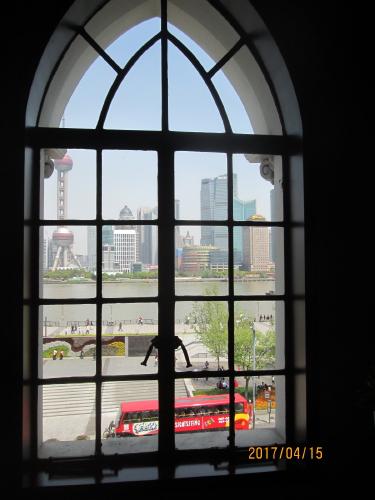 旧中国通商銀行・外灘6号と呼ばれる、上海優秀歴史建築に認定される。外から見た1階、2階、3階の窓の形が違います。今回、窓の内側から外灘の景色を見て見ました。