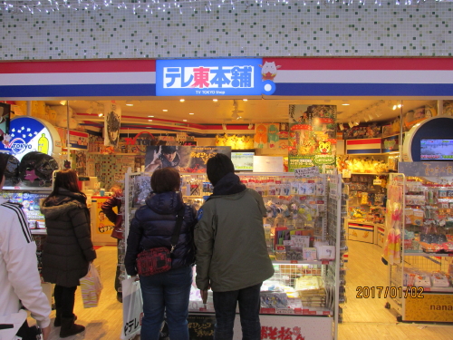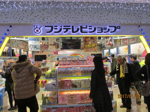 中でもテレビアニメのキャラクターグッズを売っている東京キャラクターストリートにはNHK-Character SHOPを始め、在京キー局のフジテレビショップ、テレ東本舗、TBSストア、日テレ屋、テレアサショップ、計6局のショップが勢揃いしてます。
