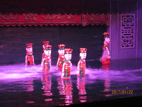 Hoan Kiem(ホアンキエム湖)がハノイの有名な観光地の一つです。清水湖はもう一つの名前(Hoan Kiem:刀を返す意味)が出来た伝説もタンロン水上人形劇場で演じられます。スクリーンの後ろで水面の舞台の人形をどのように素早く動かして演じるのか解りません。離れた所から激しい動きを操作する伝統の技は見物です。