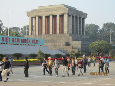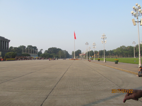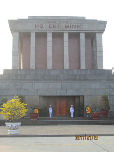 ホーチミン廟の中に入れるのは午前中のみ、日曜日は多くの人が並んでいて、2時間近く待つそうです。残念ながら夕方、ホーチミン廟を眺めるだけです。ベトナムの革命家・政治家であり、初代ベトナム民主共和国主席であるホー・チ・ミン(1890-1969)が祀られている廟。廟内部の部屋では、ベトナム人民軍の警護の元、永久保存処置を施されたホー・チ・ミンの遺体が安置されているとの事です。周辺にはホーチミンの家やホーチミン博物館と言ったホー・チ・ミンを偲ぶ施設や国会議事堂、外務省、他政府関係の建物もあり、ベトナムの歴史を語る上では欠かせない場所となっています。