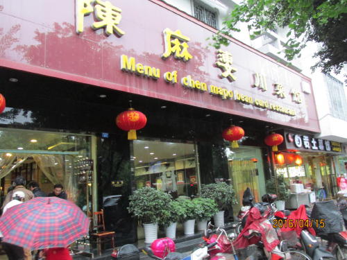 九寨溝のホテルを7:00に出発してから成都の陳麻婆豆腐を目指して420?乗車時間9時間を掛けてやって参りました。成都市内が渋滞で1時間掛って17:30着、疲れました。成都市青華路19号附12号 陳麻婆豆腐川菜館、電話 87317216送仙橋水電学校傍