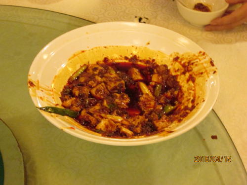 有名な麻婆豆腐、昔食べた時は口から火を噴くほど辛かったが今は観光客に合せて辛さを控えめにしています。成都生まれのガイドさんも成都の麻婆豆腐はこんなものでは無いと言ってました。- 旅行時期