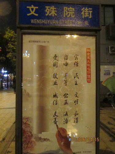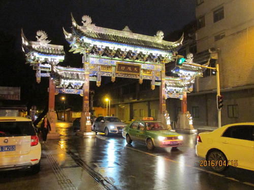 地下鉄人民北路駅近くの成都・芙蓉麗庭酒店に宿泊しました。夜の街歩きで文殊院へ行って見ました。文殊院の入場時間は8:00~17:00で夜行っても真っ暗です。入口の牌楼を眺めて来た事としました。何所のお寺でも門前町と言うのがあります。文殊院の門前市は何処かなと思って見回しましたが文殊街の通りは真っ暗で怖いくらいでした。文殊院の南側の通り白家塘街に食堂やら地元住民向きの商店街がありました。散策した所マッサージ店が有りましたので黄龍の疲れを取る為に全身マッサージをお願いいたしました。1時間で50元で上海と同じ地元価格でした。お蔭で大分足腰が楽になりました。明日は日本に帰ります。