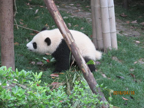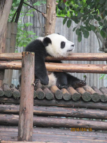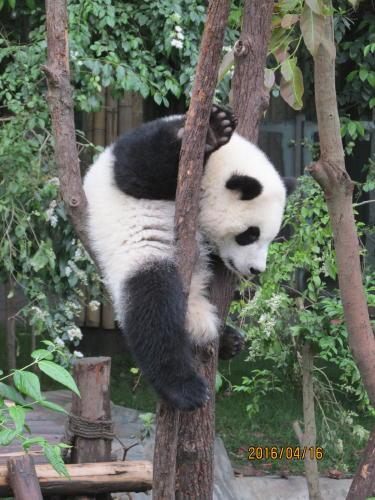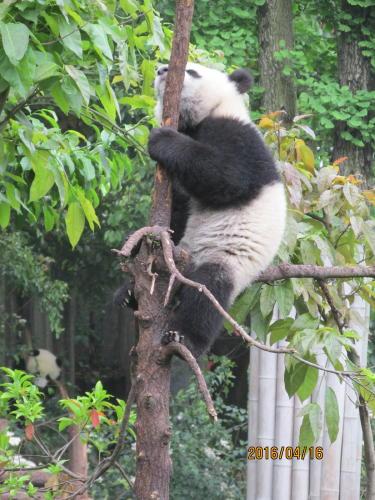 今回九寨溝に行きましたが九寨溝はパンダの生息場所です。パンダが水を飲みに来る所から熊猫海と言う湖がありました。成都の周辺にはパンダの他にも数多くの絶滅動物が73種いるそうです。成都のパンダ繁育研究基地は外環状道路近くの熊猫大道に有ります。山の中かと思ったら成都中心部からさほど離れていない場所で近くに住宅が建設されています。上海、桂林とパンダを見ましたが、成都は最大のパンダ基地です。特に可愛いのは2歳(パンダの歳を3倍すると人間の歳に成る)前後のパンダで良く動いて樹に登ったり、じゃれ合ったりしぐさがとても可愛かった。20歳を越えたぱんだは寝てばかりで面白くありません。パンダを見るコツは「朝1番で見に行く事」。空いているのでゆっくり見られる。朝食の時間で食事風景が見られる、パンダに動きが見られる。大熊猫幼稚園は大変楽しかった。