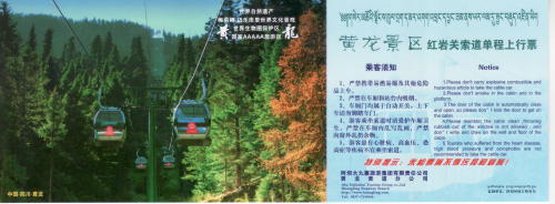 黄龍は、岷山山脈の一部である玉翠山の山頂(標高約5100m)から北に向かって伸びる全長7.5kmの峡谷(黄龍溝)です。その中腹の標高3100mから3600mの間を黄龍風景区として開放しています。2003年ユネスコ自然世界遺産に認定されました。2006年8月にロープウェイが開通しました。景観を考慮してロープウェイの2駅はいずれも遊歩道のコースからかなり離れたところに設置されています。入り口駅は無料バスで移動し、山上駅から五彩池までは平坦な路と登り路2550m(徒歩80分)掛かります。帰りは渓谷沿いを徒歩4400m(130分)で多くの石灰華段を散策しながら下ります。見所は世界有数のカルスト地形です。新生代第四紀に隆起した石灰岩層が氷河に侵食されて巨大な峡谷となり、そこに石灰分の豊富な水が流れ続けた結果、石灰華の沈殿したエメラルドグリーンの美しい石灰華段(石灰華段丘とも)をはじめ、黄金色に輝く石灰華の層、そして石灰華の滝や谷です。3千mを越える高地ですので高山病になりますので注意して下さい。水量と快晴が重ならないと美しいエメラルドグリーンは見る事が出来ません。天候も1日で春夏秋冬、晴曇雨雪と変わりますので雨具、防寒具が必要です。