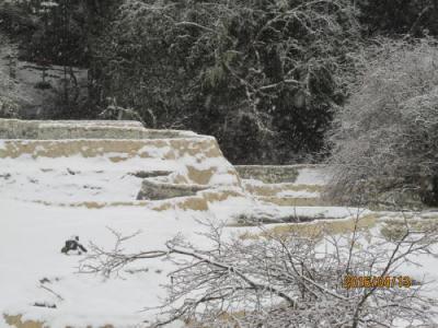 2番目の規模を持つ色彩鮮やかな「争艶池」ですが雪で白一色です。