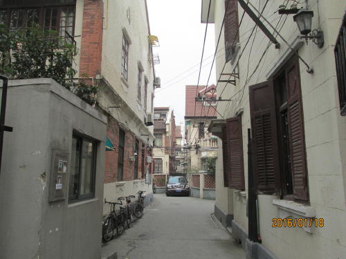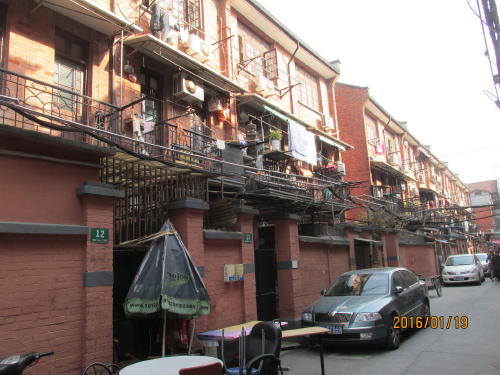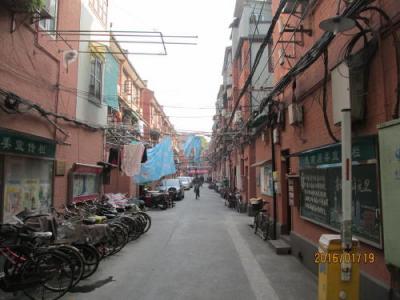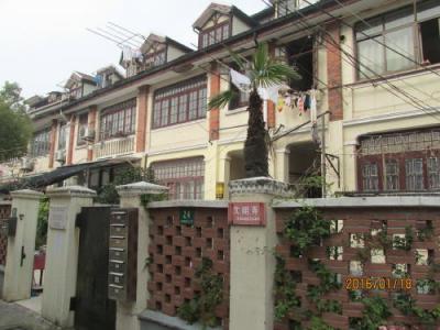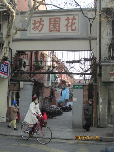 フランス租界を南北に走る住宅道路に今も残る住宅街花園坊。多くの住民が生活してます。