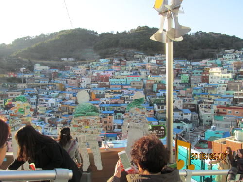 甘川文化村の博物館内の写真。当初は朝鮮動乱時、ソウル方面から南へ逃げて来た避難民が住み着いたのが始まりだそうです。高台の傾斜地は人の住む所で無かったので空地に成っていました。そこにバラックを建て、住み着きました。金持ちは傾斜の緩やかな低地に、貧乏人は高い傾斜地に集まり、ここは貧民街と成りました。近年、此処を明るい街にしようと芸術家が集まり、建物に絵を描いたり、オブジェを付けたりしました。面白いと若者が集まり、今やデートスポットや観光名所に変わりました。多くの階段を登って辿り着く所から、釜山の「マチュピチュ」と呼ばれているらしい。ツアーはバスで行けますが個人観光客はタクシーで、地元の人はセマウルバスを利用します。足に自信がある方は下から登って見たらどうでしょう。