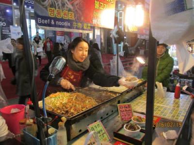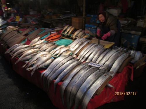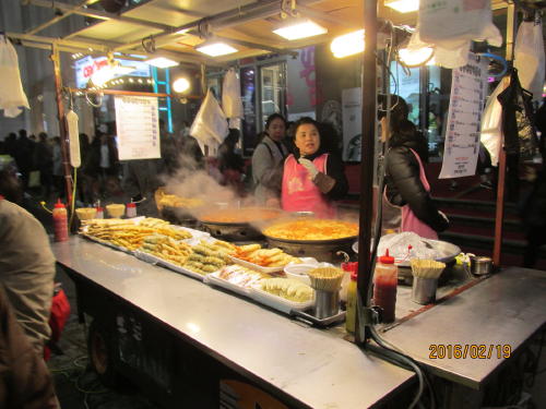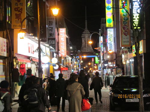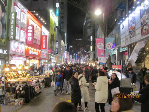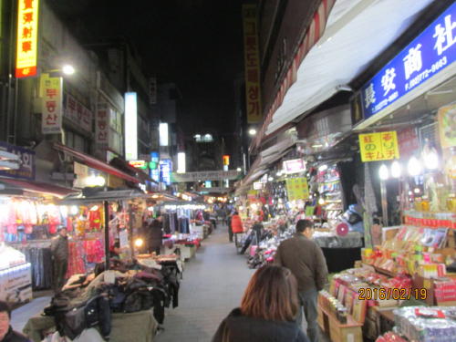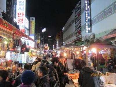 ソウルへ着きました。夕飯はブルコギを食べてツアーのオプショナルで南大門市場へやって来ました。相変わらず道を塞ぐように商品が並んでいます。10足以上で1000円の靴下が沢山売っています。昔は地元民の市場でしたが最近は観光客相手に成っています。現在は日本人より中国人の爆買いに期待が掛かっています。放火で焼けた南大門が復原されているのを見ました。南大門が無くては南大門市場に成らないですね。