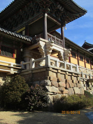 海印寺が世界文化遺産ではありません。蔵経板殿と言われる8万大蔵経を保存した建物が世界文化遺産に認定されました。建物は東西南北の4棟から成り長方形の形を成しています。1488年に完工した8万枚の蔵経板を保管した施設で世界最古と言われています。また蔵経板が世界記憶遺産に認定されています。蔵経板殿の構造はエアコンの無い時代に空気調節を完璧にした建物です。床の土は塩・炭と石灰・砂の順に敷いて湿度を調整したようです。建物の周りには窓が全面に上と下の窓の大きさを変えて風通しを良くしています。そんな昔に科学的な考えを持った人がいたなんて、?びっくりぽん”です。お坊さんは経も読んだが風も読んだのでしよう。現代は空気の読めない人が多くなりました。- 旅行時期