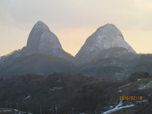 海印寺から全州へ高速道路で移動します。全州の手前のサービスエリアに馬耳山道立公園の馬耳山が見渡せる馬耳山展望台があります。馬耳山には昔から伝わる伝説があります。ふたりの仙人がここに下りてきて息子を生んで暮らし、空に帰る時に集落の女に空に上るところを見られたために空に帰れなくなり、岩山になったという話です。自然が作った傑作です。馬耳山の南に位置する場所にある塔寺の塔は自然石を積み、まるで錐のよう尖っており、このっぽな塔が列をなしています。現在は80個あまりが塔が残っているそうです
