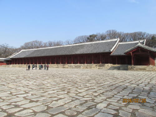 宗廟は一つの王朝の王と王妃を祀っています。これは世界的に例を見ないそうです。中国の北京にも明の13陵があります。明は太祖洪武帝(朱元璋 在位1368年 - 1398年)から17代崇禎帝までの中の13陵です。宗廟は始祖太祖から二十七代純宗までと始祖太祖以前の祖先も祀られています。但し王様全員と言われていますが王に成っても功徳なく追放された2人の王様、十代王燕山君と十五代王光海君には祖、宗のおくり名が無く祀られていません。この2人は悪い王様として韓国ドラマにも良く出て来ます。火の女神ジョンイでは光海君はしっかりした皇太子として描かれています。チャングムの誓の中に燕山君が出て来てチャングムの父親が殺されます。歴代の王様は2人を除いて25人です。他に始祖太祖の父、祖父、直系以外から王が出た場合はその父、王に成らなかった世子で功のあった人10名が祀られています。李王朝最後の28代王になる予定だった最後の王世子である李垠(イ・ウン)は11歳頃、人質として日本に渡り日本人と政略結婚します。その相手は日本の元皇族で梨元宮家3代目の長女として生まれた李方子(リ・マサコ)様。二人は1963年に韓国に帰国し、持病があった李垠はその7年後に亡くなり、李方子様が亡くなったのは1989年のこと。永寧殿16室に祀られた懿愍皇太子と懿愍皇太子妃がその人です。
