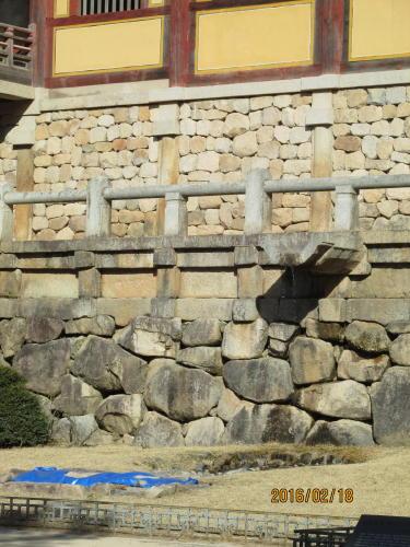 ツアーは百済へ行く前に、新羅の仏国寺へ寄って行きます。仏国寺へは昔に1度 12年12月、13年10月、今度で4回目です。何度も来るとガイドさんの説明を聞く余裕も出来、新発見もあります。仏国寺は何度来ても良いです。今回は火災に会っても残った石垣を見ました。これから行く百済を破り、8世紀統一新羅時代に造った土木・建築・石造技術の高いレベルを示す貴重な文化遺産が残っています。黒く煤けた石が当時の物です。また日本ではお馴染みの御朱印を頂いて来ました。後の32ヶ所が何処なのか調べて見たい。