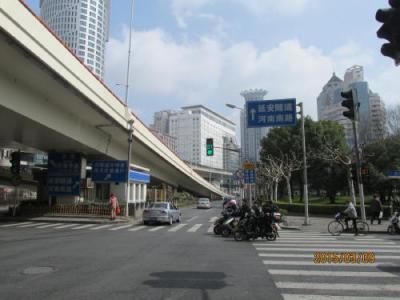 初期の英租界の西の端は河南中路で、英租界と仏租界の境界は延安東路です。河南路は虹口(日本人街)、英租界、仏租界、上海県城(華人街)を南北に貫いている主要道路です。河南中路は南の延安東路から北の蘇州河の河南路橋まで歩きました。主要道路の両側はビルが建ち並んでいます。南京東路歩行街の交差点は再開発が進み,間も無く日本の大丸百貨店が入るビルが完成します。所々に歴史建築も残っています。