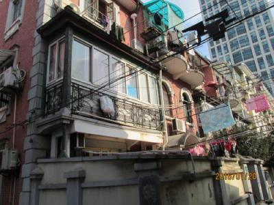 巨鹿路は、重慶南路から常熟路の交差点まで、北の延安中路と南の長楽路の間を東西に並行して常熟路までの2550mの路です。当時としては最新のベランダが付いているお屋敷があります。
