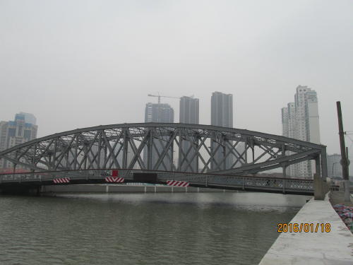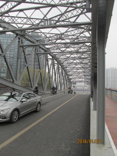上海市道路行政局の発表によると上海市閘北区と黄浦区を繋ぐ浙江路橋が2016年10月18日に修復工事を終え元の場所の浙江路に再び設置されたことを発表した。開通は12月末を予定しています。橋脚部分のサビによる腐食を受け今年5月に橋の袂に修理工場を建て、クレーンで吊りあげて修理工場へ搬送しました。橋の袂に工場を建てたので短期間での修理に成功した。約半年間の通行止めで済みました。コンクリートパネルの床を鉄板に変える事で橋の総重量を660tから420tまで軽量化し、橋の下の高さを20cm底上げして船舶の往来を考慮しました。これで約50年寿命が延びるそうです。浙江路橋は外白渡橋(ガーデンブリッジ)と同年代の橋です.