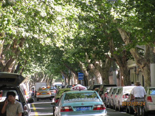 上海ではプラタナスの事をフランス青桐と言うそうです。フランス租界を中心に市内各所に見られます。これはフランス租界が出来た頃に植えられたのでは無いでしょうか?上海市では「並木トンネル20選」を初認定したそうです。ただ美しいだけでなく