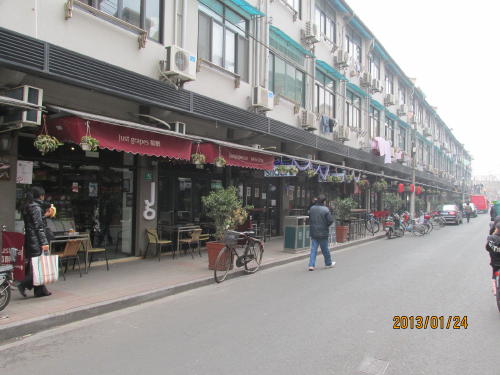 上海で南京東路と並ぶ繁華街、准海東路を西へ進むと准海中路と名前が変わります。フランス租界時代の名残が残る高級住宅地です。地下鉄10号線の上海図書館駅前を准海中路から北西へ入る路が湖南路で、入ってすぐに永福路との三叉路に出ます。ここから永福路は北へ進み復興西路を越えて五原路まで,更に五原路を行くと安福路の交差点にでます。ここから西に烏魯木斉路を越えて常熟路までが安福路です。客層は欧米人が多いようです。常熟路は地下鉄一号線の常熟路駅に出る事が出来ます。