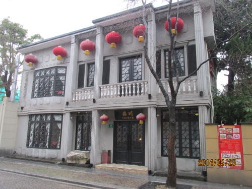 桃江路は宋慶齢故居の裏側にあたり、散歩道として使われていたそうです。全国重点文物保護対象と指定されたことにより本来の石畳(石を敷き詰めた道)の姿に戻すことが決定され、2008年4月から20万個の花崗岩を使って改修が行われ、今は散歩道として復元され、静かな道として生まれ変わりました。桃江路は静かなお屋敷町で石畳の道が良く似合います。大邸宅を活用した四つのレストランも石畳に合うよう改装したそうです。この200mの短い通りには、(イ肖)江南(四川料理)、品川(四川料理)、新吉士酒楼(上海料理)、Kagen(鉄板焼き)の4つの有名なレストランがあり、味も値段も保証つきなので是非一度は試して見たいものです。