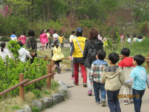 ソウル大公園は外郭循環道路に沿って約7Kmの街路樹に咲き乱れる桜が見事です。イベントで「桜の道を歩く大会」が開催され、家族で参加する人たちもたくさん見かけます。外郭循環道路は丘陵地帯に造られているので坂道なのです。「桜の道を歩く大会」は結構きついでしょう。今回も水やパンを準備し「“葉”桜の道を歩く大会」を開催している学生の団体がありました。それはそれで皆さん楽しんでいるようです。ソウル大公園は動物園、植物園、遊園地(ソウルランド)などがあり、子供たちと一緒に楽しめるさまざまなアミューズメント施設がある為人気が高いのです。外郭循環道路にはミニトレインが走っていて入り口、動物園、遊園地を結び一回1000W(100円)で乗る事ができます。場所は地下鉄4号線テゴンウォン(大公園・Seoul Grand Park・437)駅2番出口を出て、約500m直進するとソウル大公園正門があります。