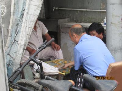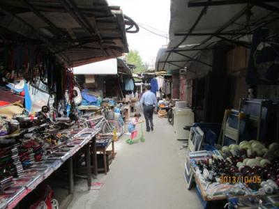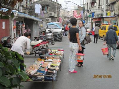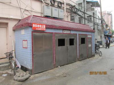 蓬莱路はB地区の凝和路との交差点を西へ入りました。ご覧のように古い家が残った住宅街です。古い住宅にはトイレがありません。夜間は“おまる”馬桶と呼ばれる入れ物に小便を入れ朝になると小便池に捨てに行きます。朝、パジャマ姿で馬桶を下げてる姿は下町の風物詩とも思われます。いささか匂いますが。
