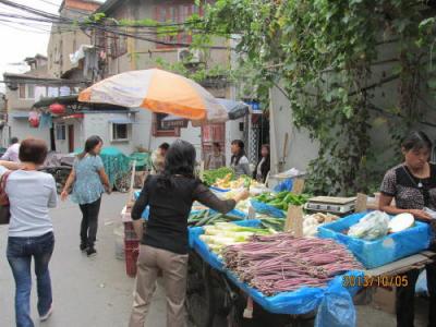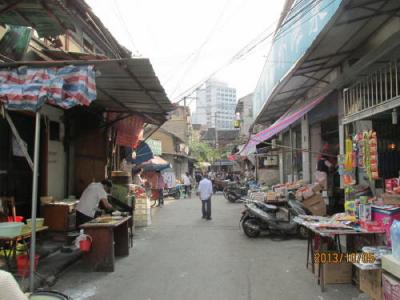 凝和路はB地区を南北に走る路で下町らしさが多く残る所で大変賑やかな下町の商店街と言った通りです。商店街と言っても店舗より路面にシートを敷いて物を並べる露店が主流です。黄家路との交差点から蓬莱路との交差点まで北上して見ました。特に朝は朝食を食べる為の人と買い物の人とで狭い道に人がごった返しています。まだまだ下町は健在です。