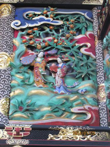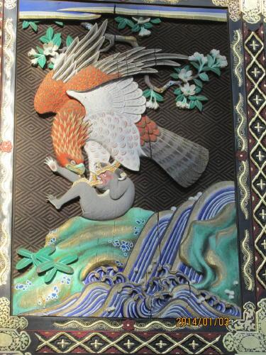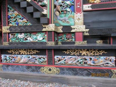良く覚えてないが小学校の遠足が「妻沼の聖天さま」だった気がします。60年ぶりなので昔の面影は無く、立派な国宝になっていました。日本三大聖天のうちの一つに数えられる名刹だそうで日光東照宮に負けない本格的装飾建築で豪壮華麗な彫刻は「埼玉日光」と称されているそうで熊谷(妻沼は熊谷に合併)にそんな有名な物があったとは、ぜひ皆さんにも見ていただきたい物です。八年の歳月と膨大な工事費を注込んで平成の大修復が終わり平成24年7月9日に国宝に指定されました。埼玉県で建造物としては第一号です。「熊谷直実」と「ご家宝」しかなかった熊谷に国宝が出来た事は喜ばしいことです。入場料を払うとカラー刷りの立派なパンフレットがいただけます。以下の説明はパンフレット