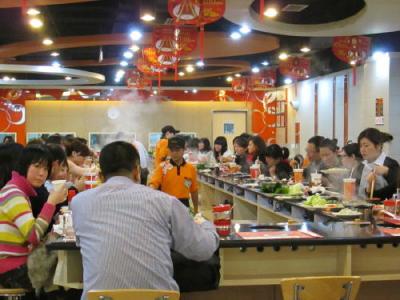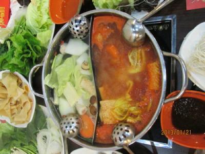 中国全土で323件、北京で205家、上海で56家、蘇州に2家で毎月増えています。レストランでは火鍋は大人数向けで1人鍋は扱っていない。呷哺呷哺は1人鍋が主体でカップルで来て一人づつ鍋を食べています。私は肥牛套餐31元、牛肉、野菜、麺がセットになってます。スープは清湯2元、たれはゴマたれで3元、ビール400cc7元合計43元で暖かくお腹一杯です。- 旅行時期