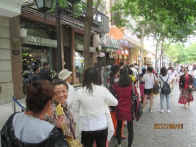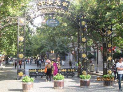 ロシア統治時代の建築物が数多く残され、「東方のパリ」とも称される西洋風の街並みが一直線に松花江に向かい、南は経緯街(十字街)から北は松花江防洪記念塔まで伸びている。道をはさみ、欧州風建築物が建ち並び、その数は71棟。ほかに、ルネサンス式、バロック式、折衷式など中国でも珍しい多種多様な市指定建築物が13棟、保護建築は36棟ある。現在の花崗岩で敷き詰められた道は1924年に建設されたものである。その後も改築が重ねられ、現在は中心通りは歩行者天国となり、その後の中国の都市の通りの手本となった。